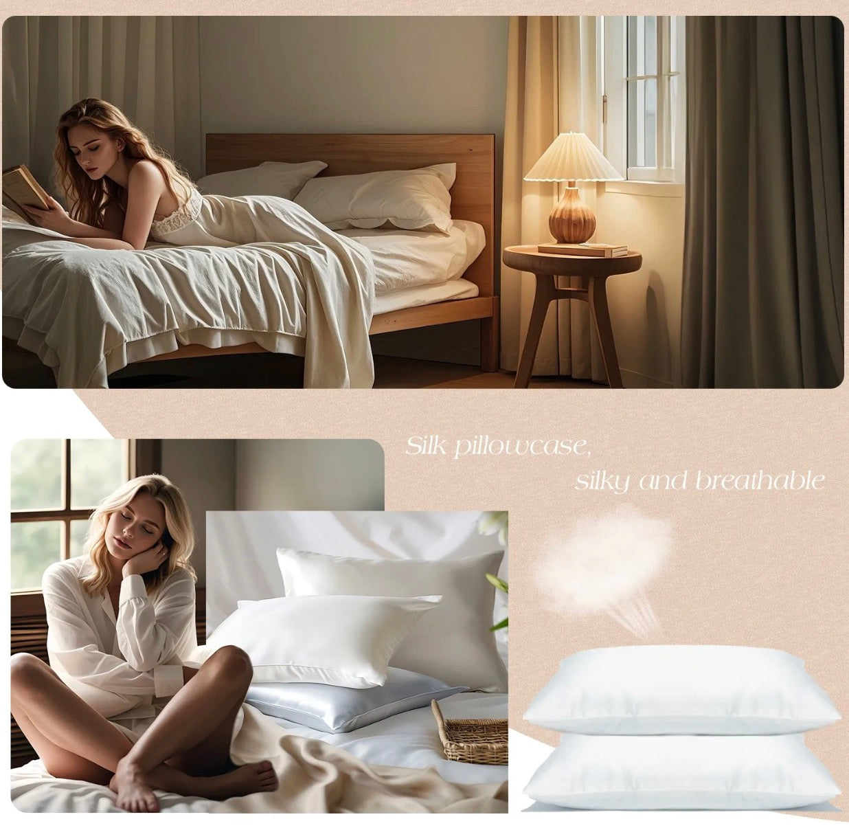 Experience the indulgence of a 22 Momme 100% Natural Mulberry Silk front, crafted to cradle your skin and hair in unmatched softness. This premium-grade silk delivers an ultra-smooth surface that naturally reduces friction while you sleep.
